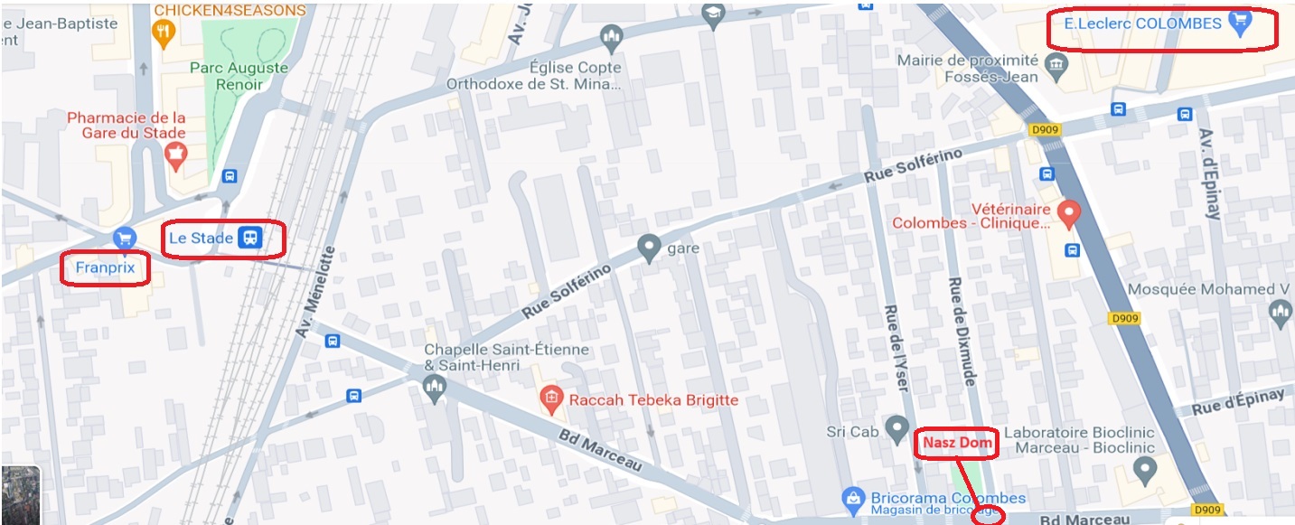 Dojazd do domu : 97 bld Marceau 92700 Colombes